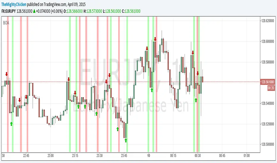 An example of binary option arrows for candlestick patterns bearish and bullish harami. With results as colored background and an option to choose your expiration (one candle by default). It's just an example for those who has their own strategy and wants to make nice arrows in their chart. All you need to do is rewrite piece of script in lines 9:13 - feel free to ask me for any help, but I believe it's all clear.
