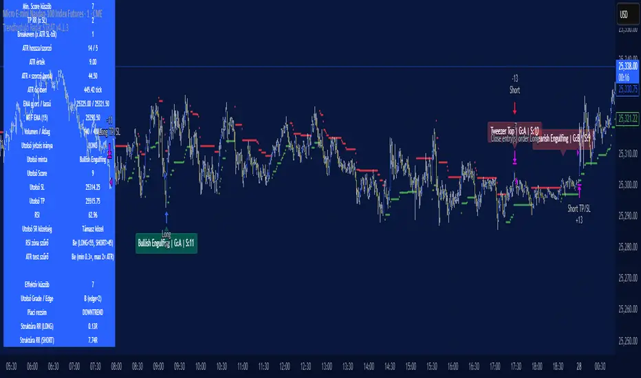 Trend Reversal Radar is a proprietary indicator that examines potential turning points in market trends. It combines data from multiple time frames, support and resistance levels, and volume movements to provide visual signals to traders. Its purpose is not to provide trading advice, but to complement technical analysis and provide more confident decision support.- A Trendforduló Radar egy saját fejlesztésű indikátor, amely a piaci trendek lehetséges fordulópontjait vizsgálja. Több idősík adatait, támasz–ellenállás szinteket és volumenmozgásokat kombinálva ad vizuális jelzést a kereskedőnek. A célja nem a kereskedési tanácsadás, hanem hogy kiegészítse a technikai elemzést és magabiztosabb döntéstámogatást adjon.