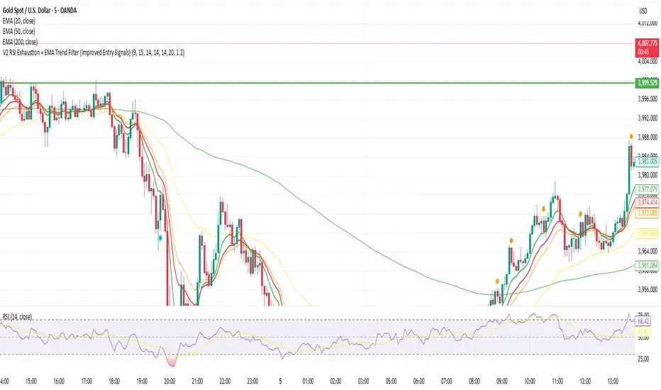 V2 RSI Exhaustion + EMA Trend Filter (Improved Entry Signals)