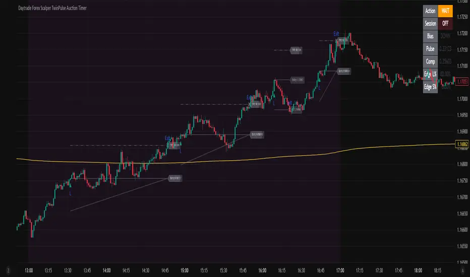 TwinPulse Auction Timer is a multi component execution aid designed for liquid markets. It looks for two families of opportunities