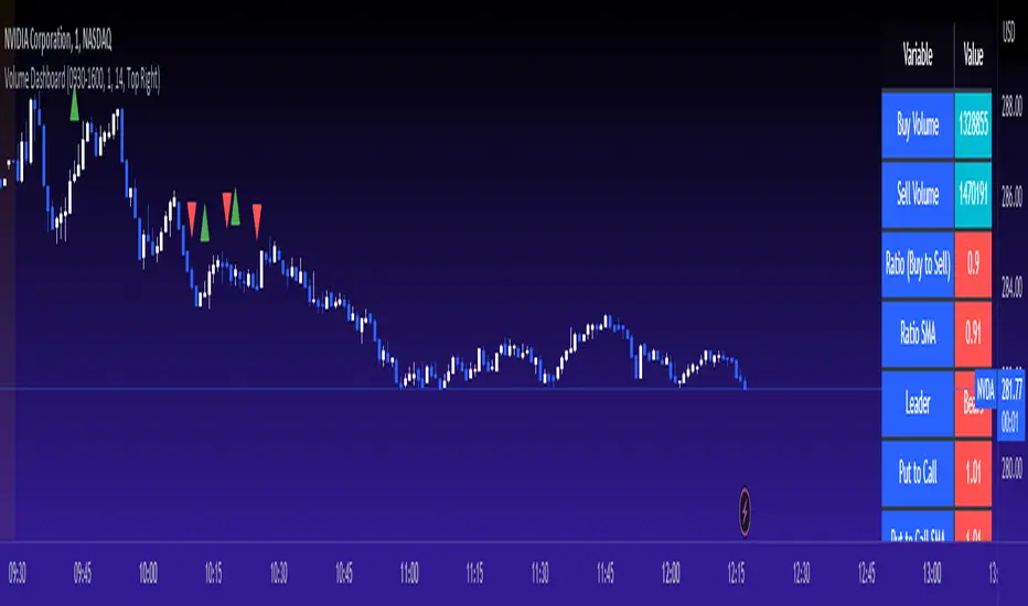 The indicator will also plot a green up arrow when buying volume surpasses selling volume and a red down arrow when selling volume surpasses buying volume: