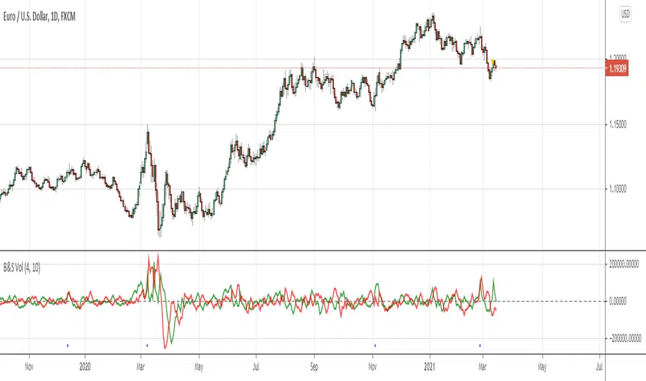 A pesar de que el volumen simplemente son operaciones que se realizan en un determinado espacio de tiempo, este indicador intenta separar dentro de una vela el volumen de compra y de venta.