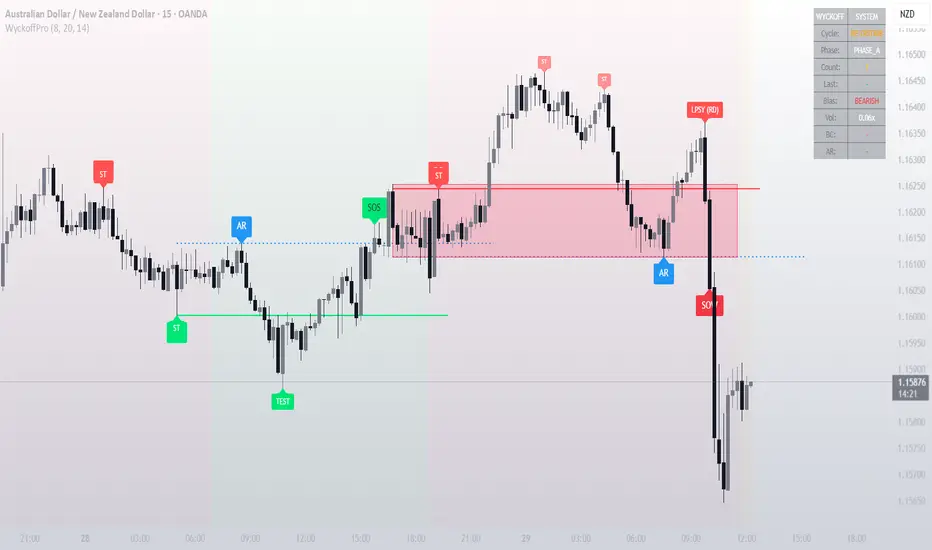 Rather than relying on rigid, textbook pattern templates, the script applies adaptive logic to interpret real-world price behavior. This allows it to recognize Wyckoff structures even when price action deviates from idealized examples, which is common in live markets.
