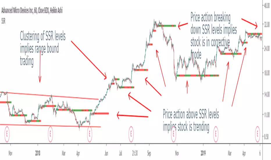 Price action tends to cluster around SSR levels as these are price levels where the bulls and bears are trying to find an equilibrium. For example, in an uptrend, significant net buying is usually a sign of impending weakness as the bull volume have been expended and there are no net incremental buying volume to support the uptrend.