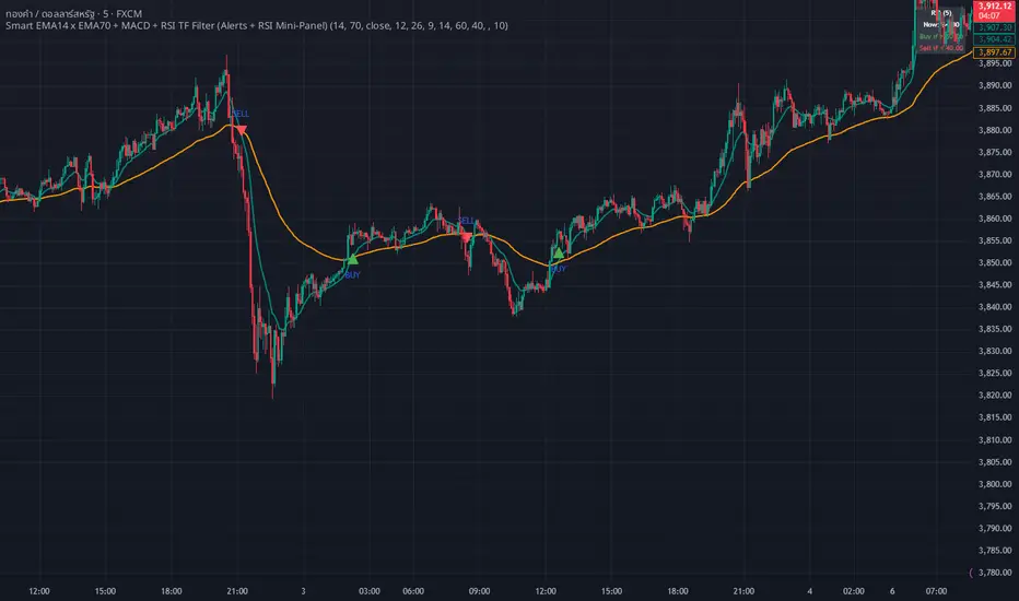 🟢 Buy when EMA14 crosses above EMA70 + MACD > 0