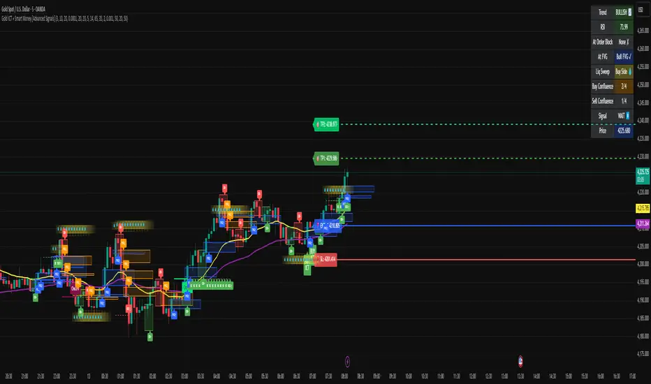 This indicator combines Inner Circle Trader (ICT) concepts with Smart Money theory to deliver high-probability trading signals based on institutional order flow and market structure.