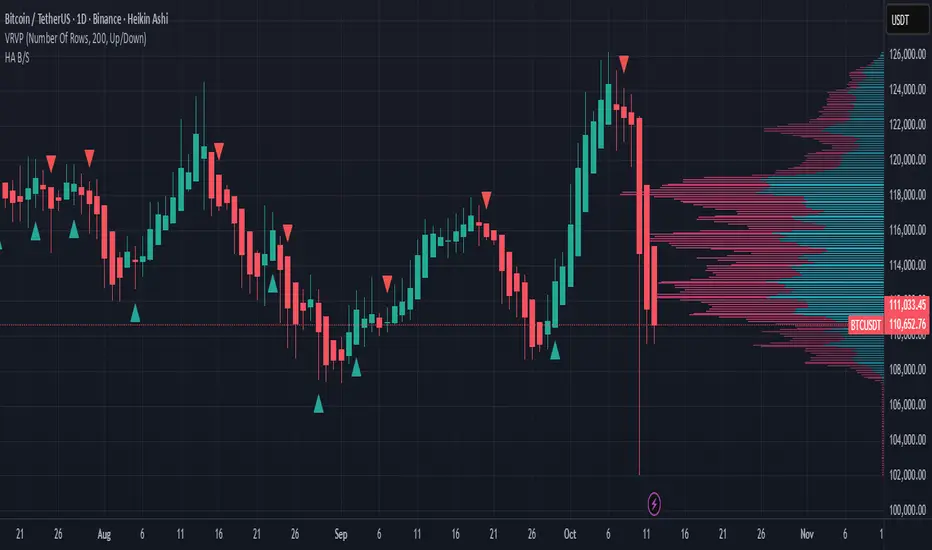 This indicator draws Buy and Sell signals on the current candlestick, based on a complete reversal pattern of the previous three Heikin Ashi (HA) candlesticks: