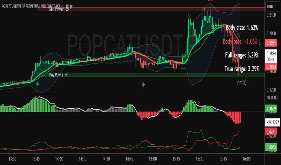 This dashboard is informational and doesn’t define alertconditions in the code. If you’d like, I can add optional alerts (e.g., bias flips from bearish to bullish beyond threshold, or volatility spikes on TR) — just say the word.