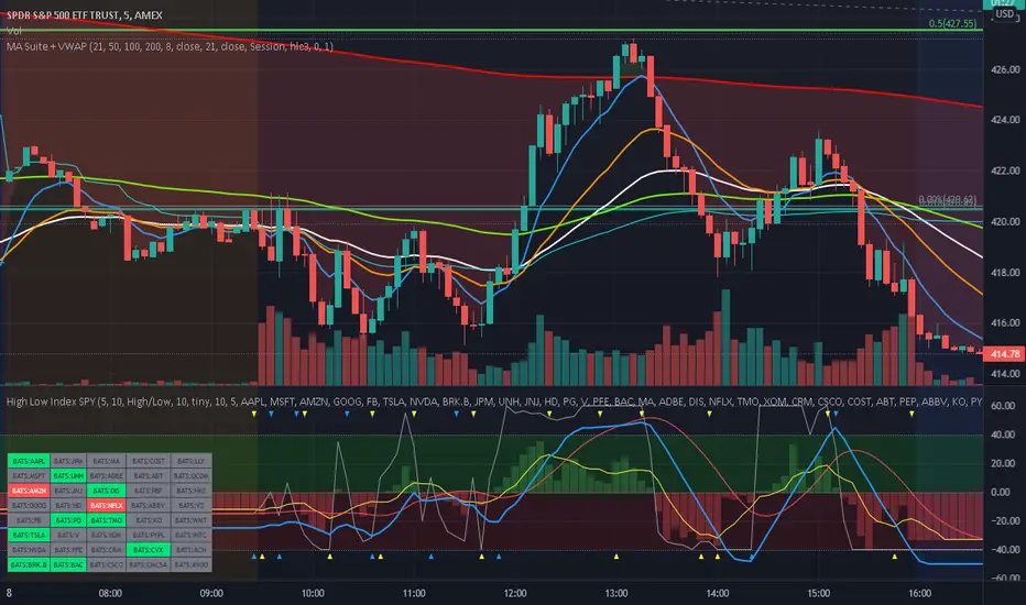 Idea behind this indicator is that SPY should follow the overall sentiment of its top holdings. I believe this bring great value to SPY traders.