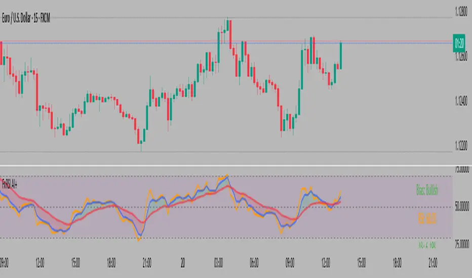 *Description Update* - Dual-EMA RSI with Range Shift Logic and Momentum Bias Detection for Trend ConfirmationFxAST RSI Enhanced Plus is a dynamic momentum indicator that enhances the standard RSI with advanced trend-awareness and confluence logic. It applies two smoothed RSI signals using Fast and Slow EMAs, helping to identify trend continuation or early reversal opportunities.