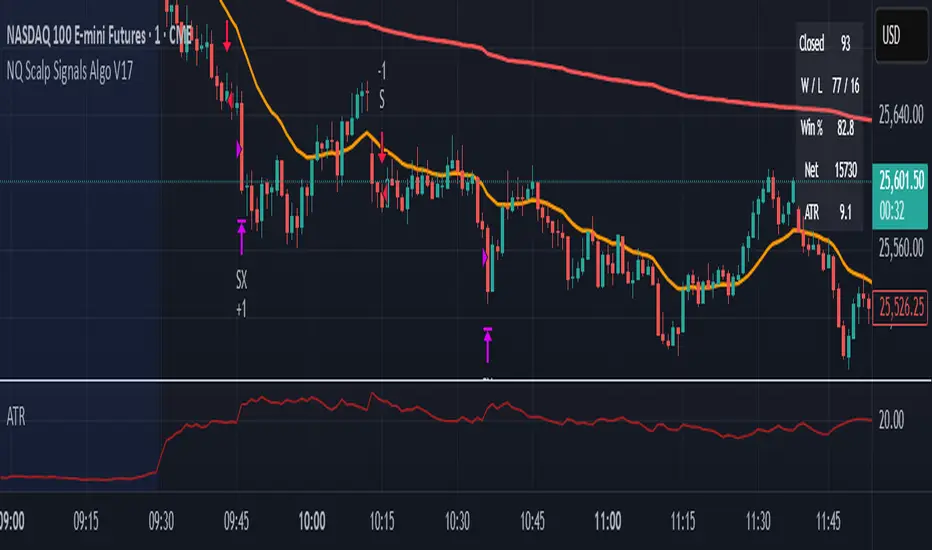 This invite-only strategy is a short-term scalper built and optimized for NASDAQ futures (NQ) on 1, 2, 3 and 5 minute charts. It combines trend-bias gating with an adaptive volatility-based TP/SL grid so the script tightens targets in smooth markets and widens them when volatility rises.