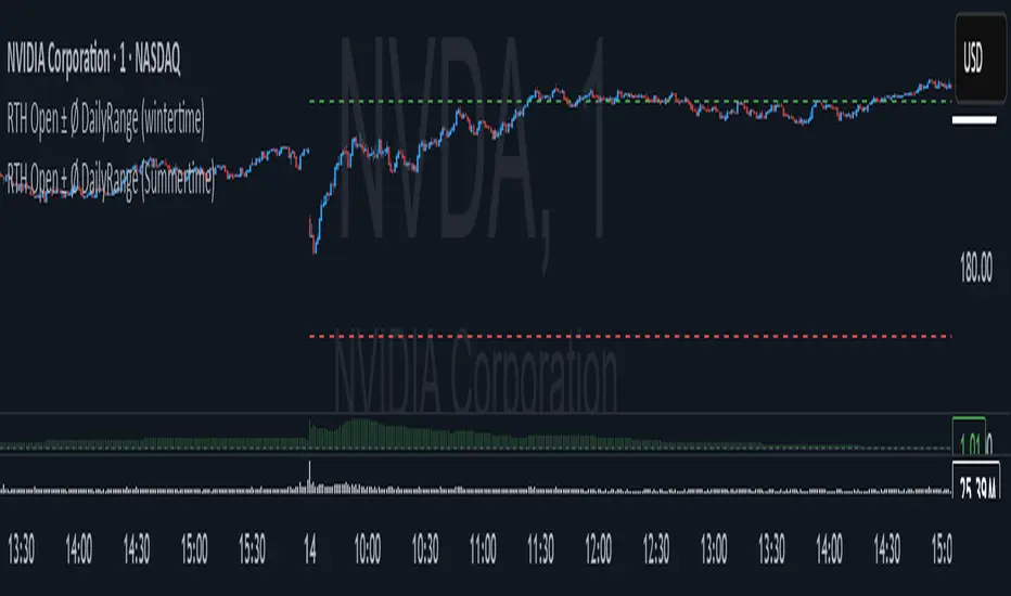 The script draws two horizontal dashed lines on your intraday chart during Regular Trading Hours (RTH).