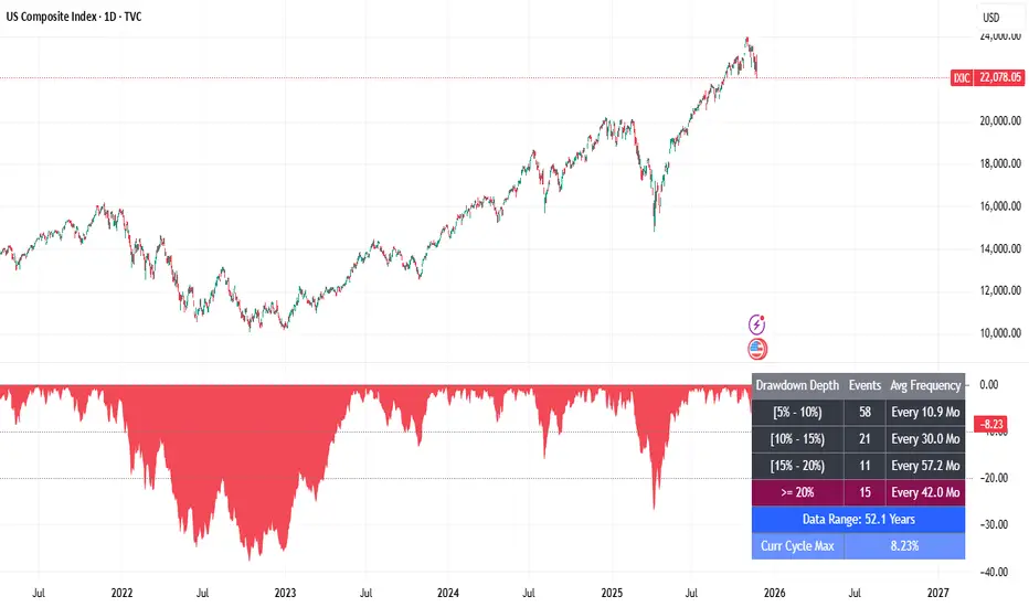 💡 Tip: Run this indicator on major indices like SPY or QQQ with maximum available history to build a comprehensive baseline for equity market corrections.