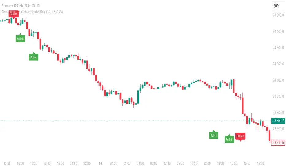 Absorption — Bullish or Bearish Only is a lightweight and minimalistic tool designed to identify pure absorption events in the market.