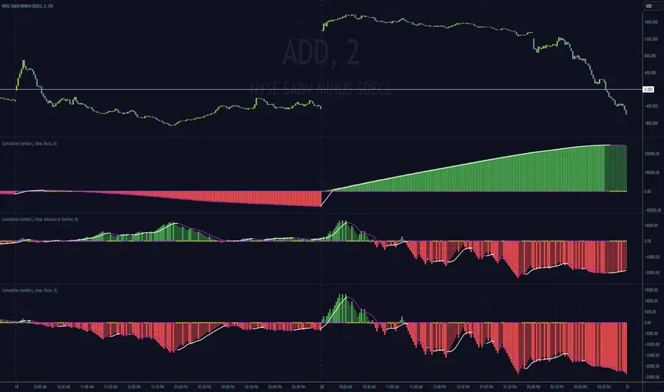 2) Advance or Decline - handles negative values as reductions to the cumulative calculation, useful to find delta pivot areas