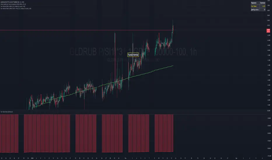 The Fair Interest Rate Ladder indicator is designed to visualize the "fair value" of interest rate instruments (bond futures, rate swaps, etc.), accounting for accrued interest or carry costs. It plots a step-line that converges toward a target base point as the expiration date approaches.