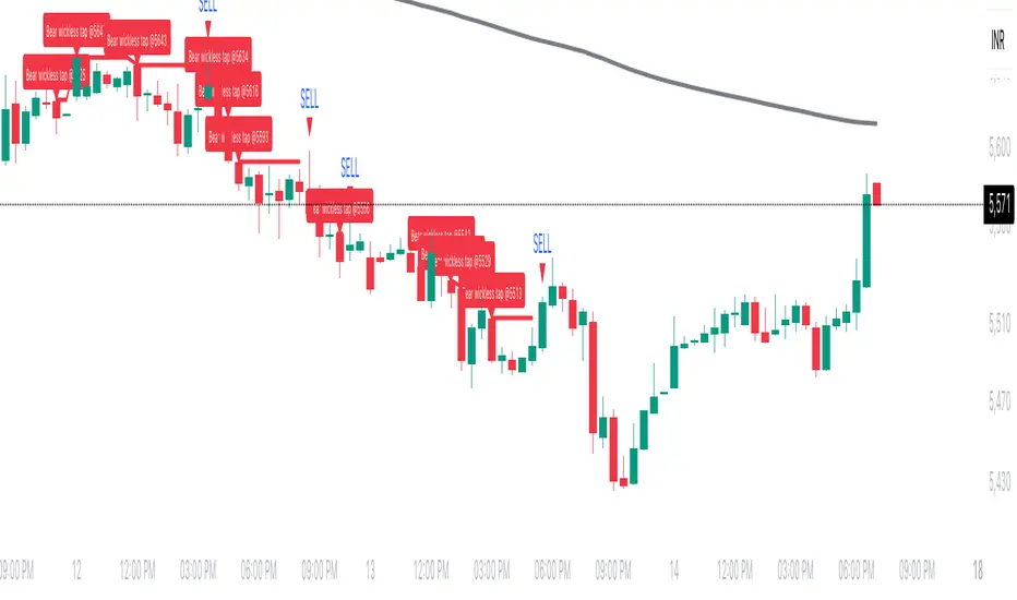 SELL: high ≥ bearTapLevel - tol and inDn and bar_index > bearBarIdx