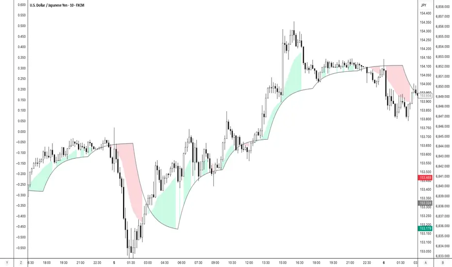 When price trades above both Kalman lines, the market is in a strong, aligned bullish state. When it trades below both, it is in a strong, aligned bearish state. The indicator plots the LTF and HTF Kalman lines and draws a coloured cloud between them only when both are pointing in the same direction, visually highlighting high-conviction trend regimes.