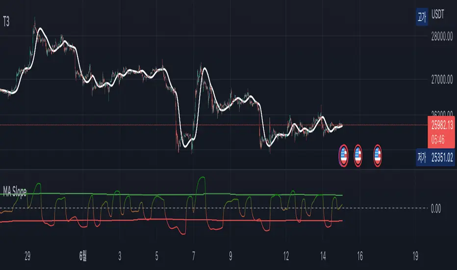 First, select the moving average line for which you want to check the slope. While SMA is commonly used, T3 is set as the default because it best visualizes the slope.