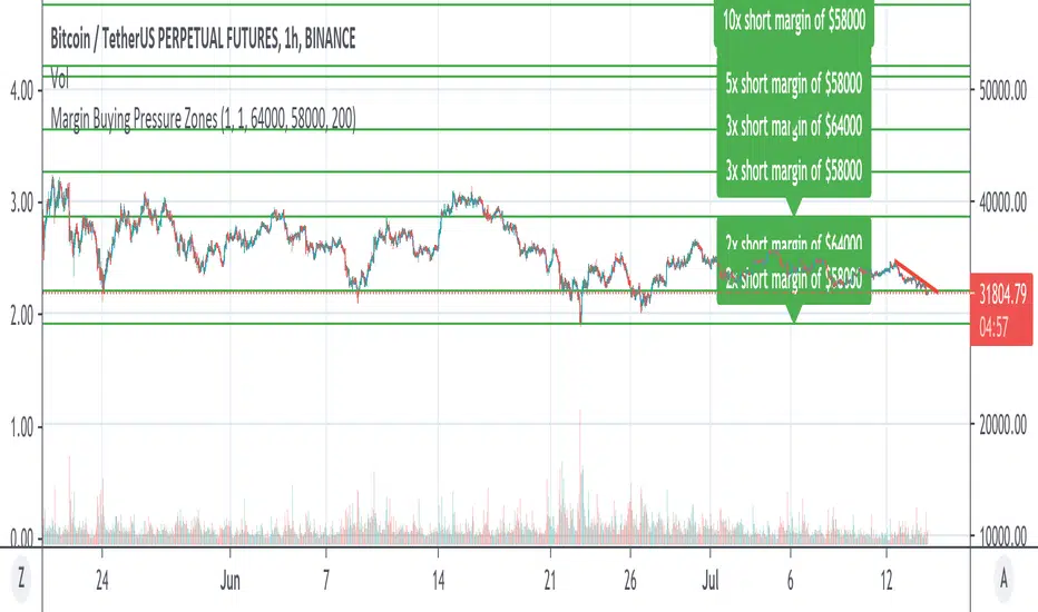 Shows the Margin Pressure Zones for longs and shorts Longs & Shorts based on 2 Base prices to be configured by you.