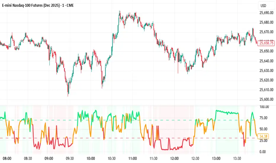 It combines 7 professional-grade factors (DOM, CVD, RSI, EMA trend, ATR volatility, Market Structure, Value Area positioning) into a unified Bayesian probability panel that outputs a clean bullish/bearish probability curve with high-confidence reversal and trend-continuation signals.