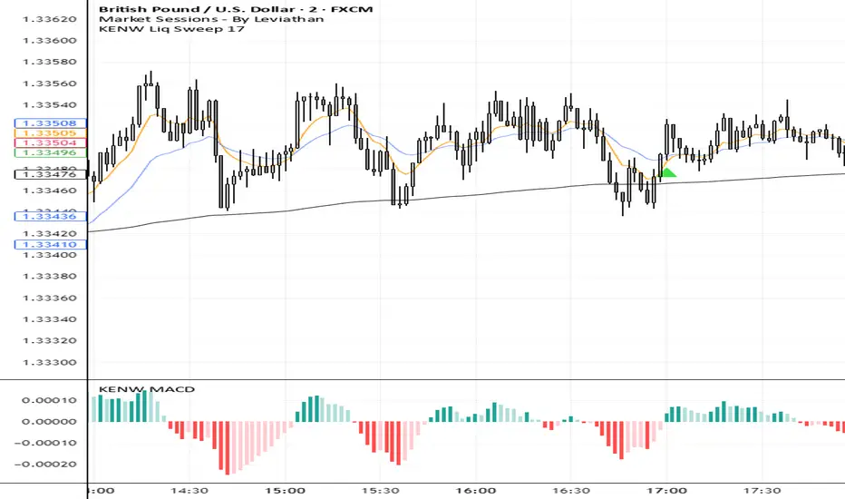 - In uptrends, it tracks Sell-Side Liquidity (SSL) by marking swing lows that occur during negative MACD histogram periods. It generates a long entry alert when price makes a lower low in SSL (i.e., the most recent SSL level is below the prior one), suggesting a sweep of sell-side liquidity before a potential bullish continuation.