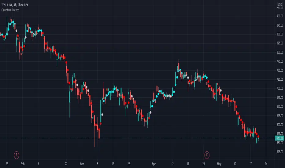 The Quantum Trends indicator paints a series of dots on the price chart as follows:
