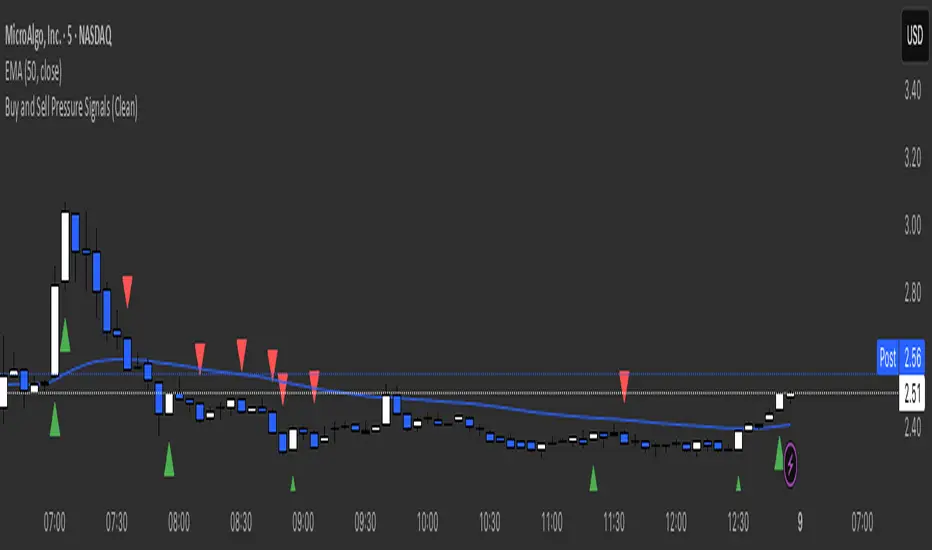 This script identifies strong buy and sell pressure based purely on candlestick structure — no indicators, no clutter. It highlights key reversal or momentum candles using minimal visuals: