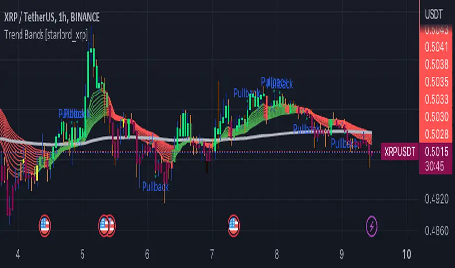 This indicator uses multiple trendlines to determine the overall trend and trend changes. It also highlights areas of potential pullbacks to entry.