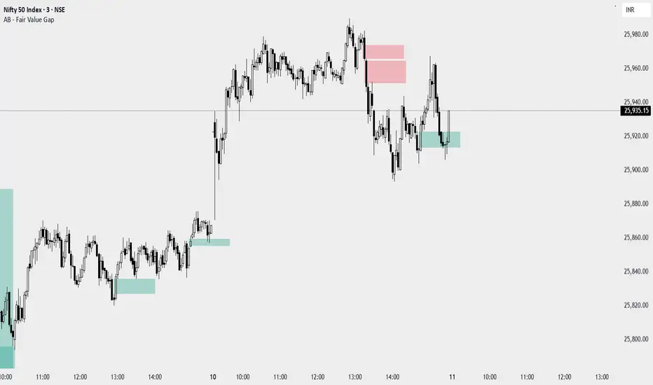 Fair Value Gap AB (FVG-AB) identifies and visualizes Fair Value Gaps (FVGs) — areas of price imbalance created by strong directional moves where market participants were unable to transact fairly.