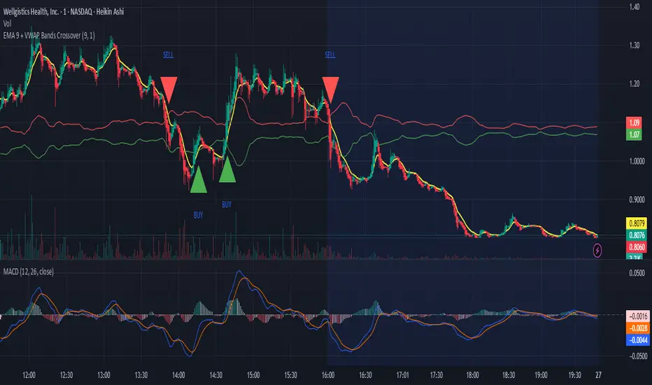 EMA 9 + VWAP Bands Crossover With Buy Sell Signals