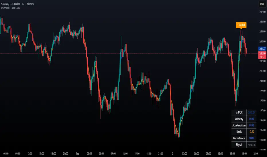- Velocity Measurement System: Tracks the rate of POC movement over customizable lookback periods with ATR normalization