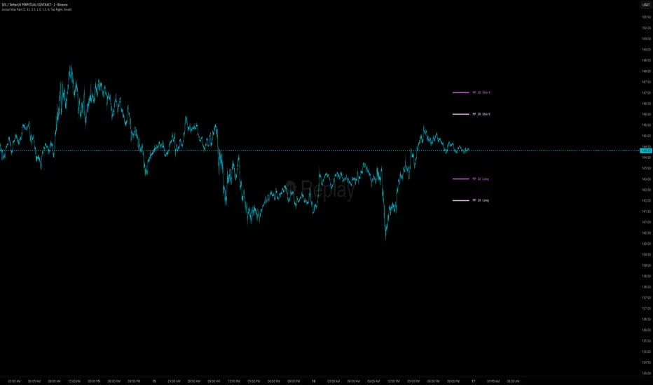 The lostsol Synthetic Max Pain indicator is a sophisticated visualization tool designed to model options market dynamics directly on your price chart. Because Pine Script cannot access live options Open Interest (OI) from external exchanges, this script utilizes a Synthetic Gaussian Distribution Model to estimate where the "Max Pain" and "Liquidity Walls" likely sit based on current price action and volatility.