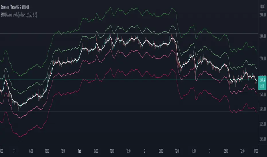 Display up to 4 distance from EMA levels, by default it's based on the 5m timeframe.