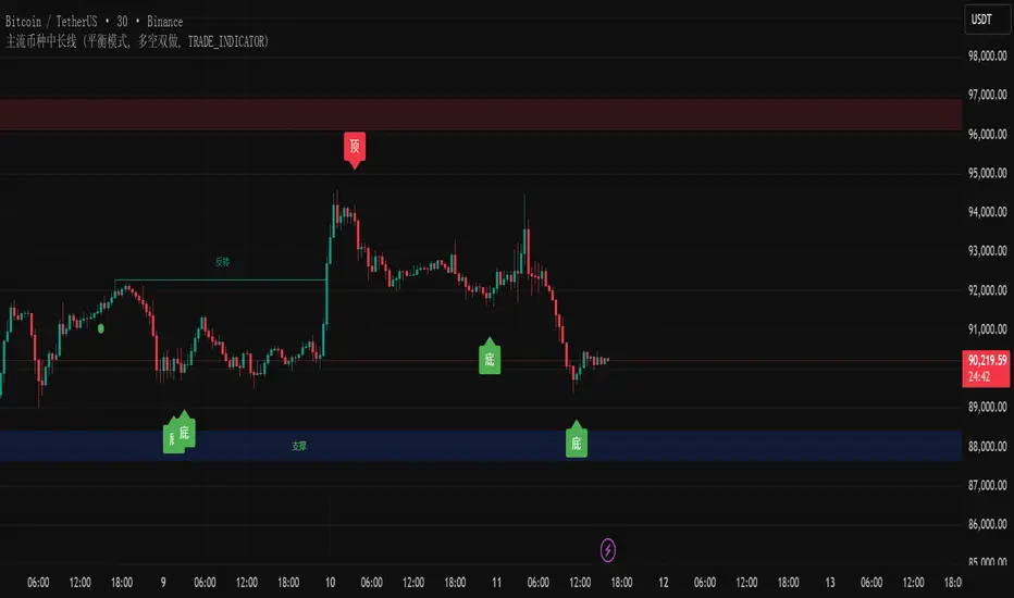这是一个专为主流资产中长线交易设计的综合分析系统。它融合了自定义的波动率算法、趋势动量过滤器以及市场结构分析,旨在识别高胜率的趋势反转点(顶/底)以及右侧顺势入场机会。
