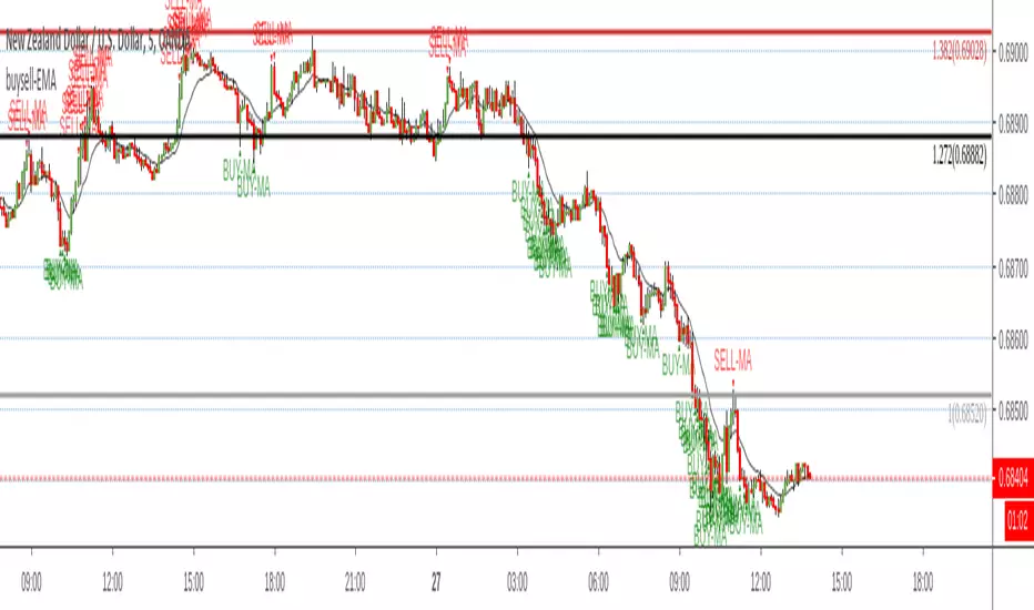 Simple script find when a probable reversal will start. When price moves sharply away from the 13 EMA a BUY/SELL signal will pop up. Scripted to work on 5m 1h, 4h, and daily chart. But it doesn't work on all charts. Not sure why. I'm a forex trader and use this on NZDUSD. It doesn't give too good results on the JPY charts. I think its a fairly good reversal indicator. It definitely doesn't catch them all, and if there is a strong bearish or bullish impulse it doesn't work too well. But with all indicators, you need other conformations when to get in and when to get out. Hope it helps someone.