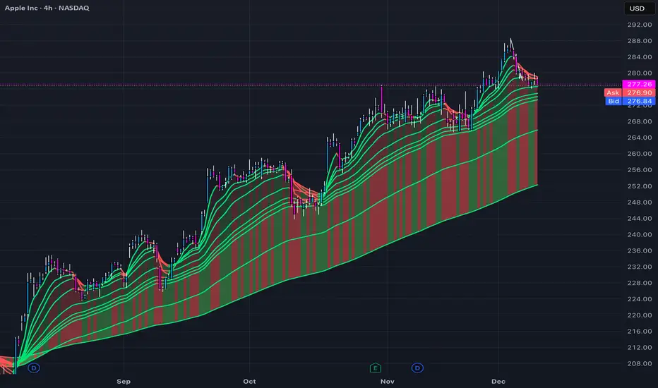 In short, this is the most flexible and visually informative moving-average ribbon available on TradingView today. Whether you want a classic 9-EMA ribbon, a Guppy-style multiple-timeframe setup, a hybrid EMA/HMA mix, or just three or four key levels, the indicator adapts perfectly while always telling you at a glance where the bulls and bears are in control.