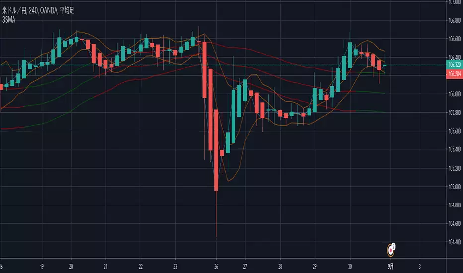 34 SMA(high, low, close) = long-term line(Green & Red)