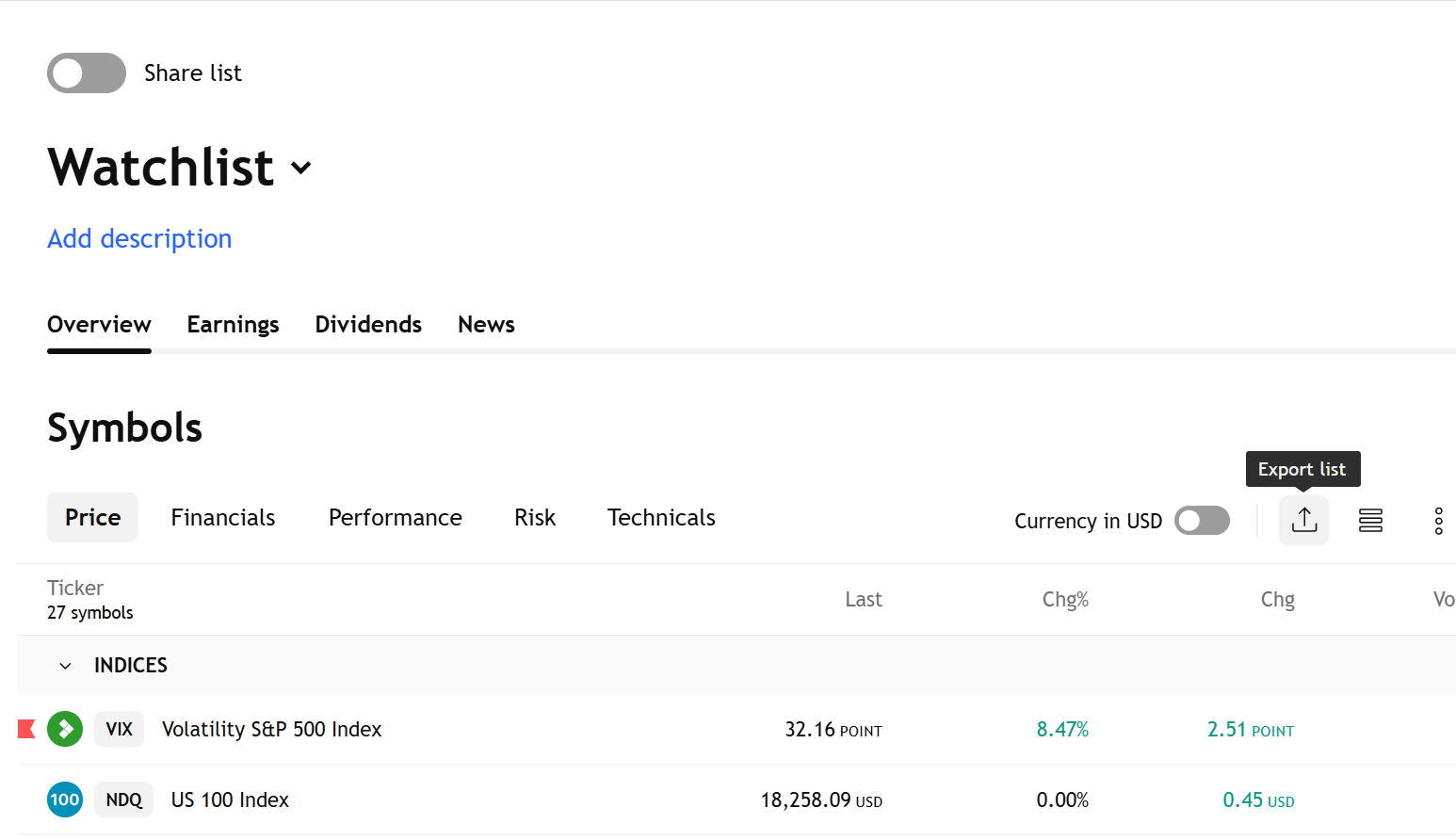 تحتاج إلى فتح قائمة المراقبة في شريط الأدوات الأيمن وتحديد استيراد (رفع) قائمة المراقبة أو تصدير (تنزيل) قائمة المراقبة من القائمة المنسدلة.
