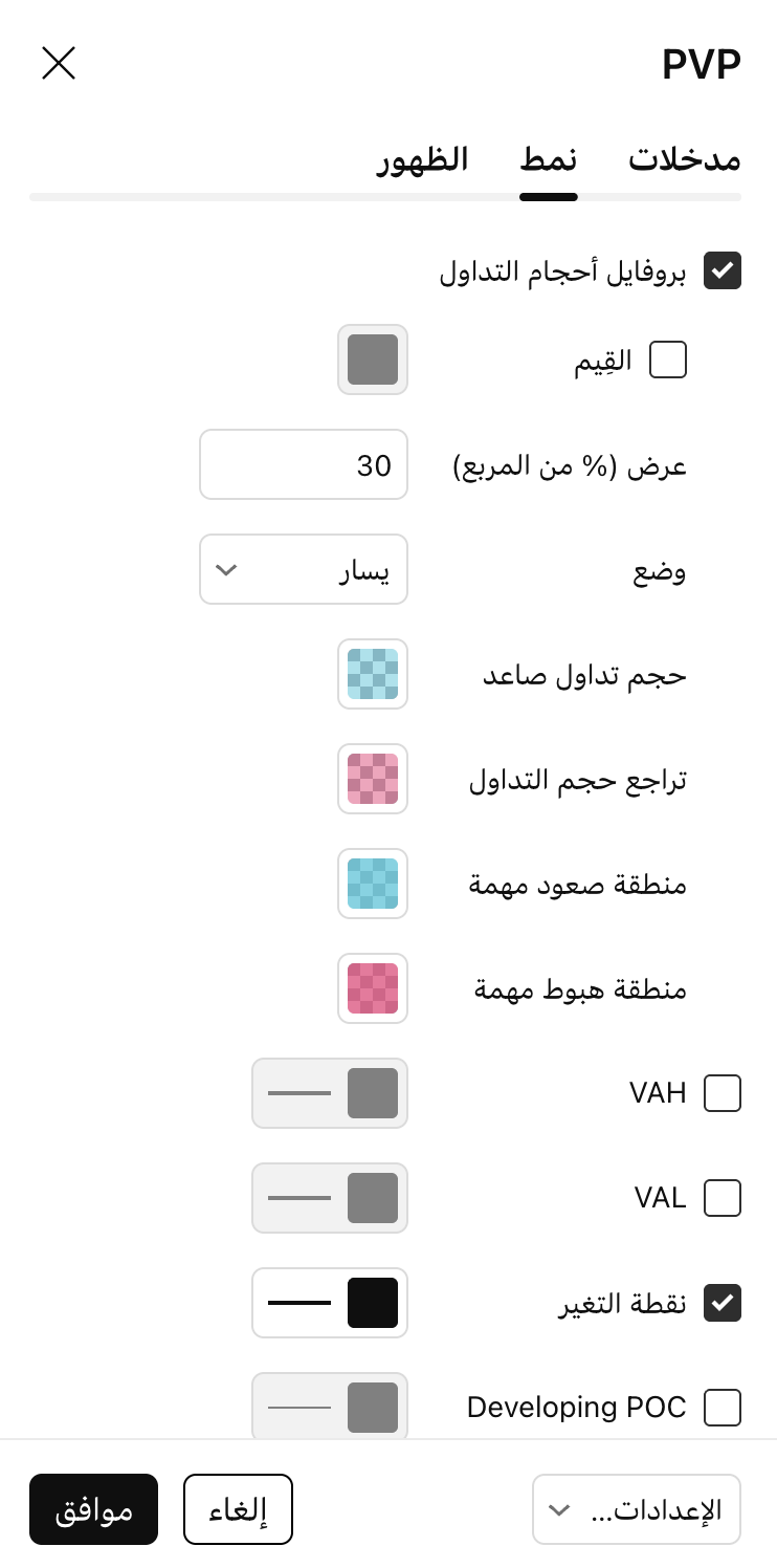 يحسب مؤشر بروفايل الحجم الدوري (PVP) سلسلة من بروفايلات الحجم التي توفر مؤشرًا على توزيع الحجم عبر مستويات الأسعار المختلفة خلال فترات محددة. يتم تحديد الفترات من خلال مدخلات المؤشر.
