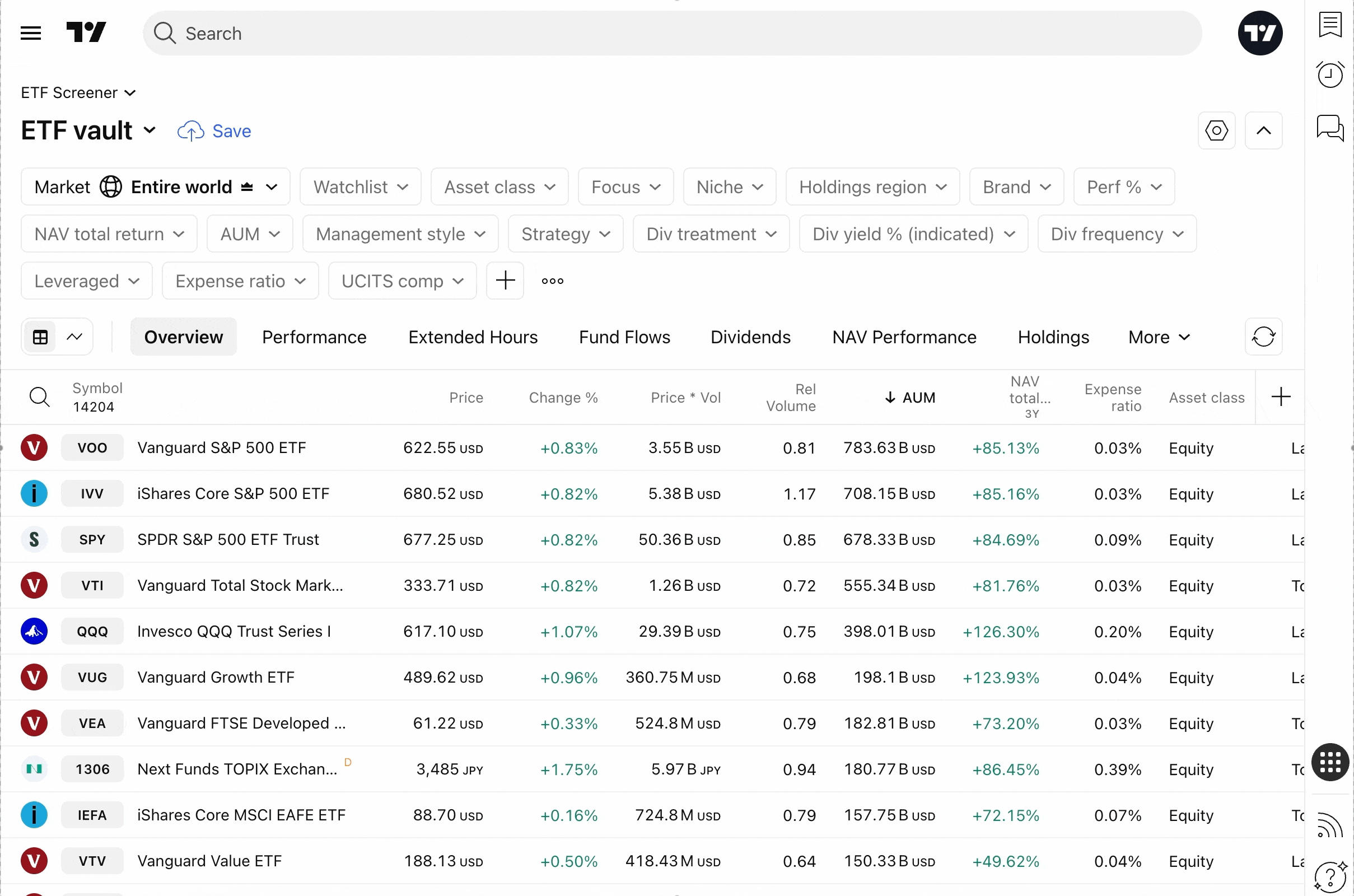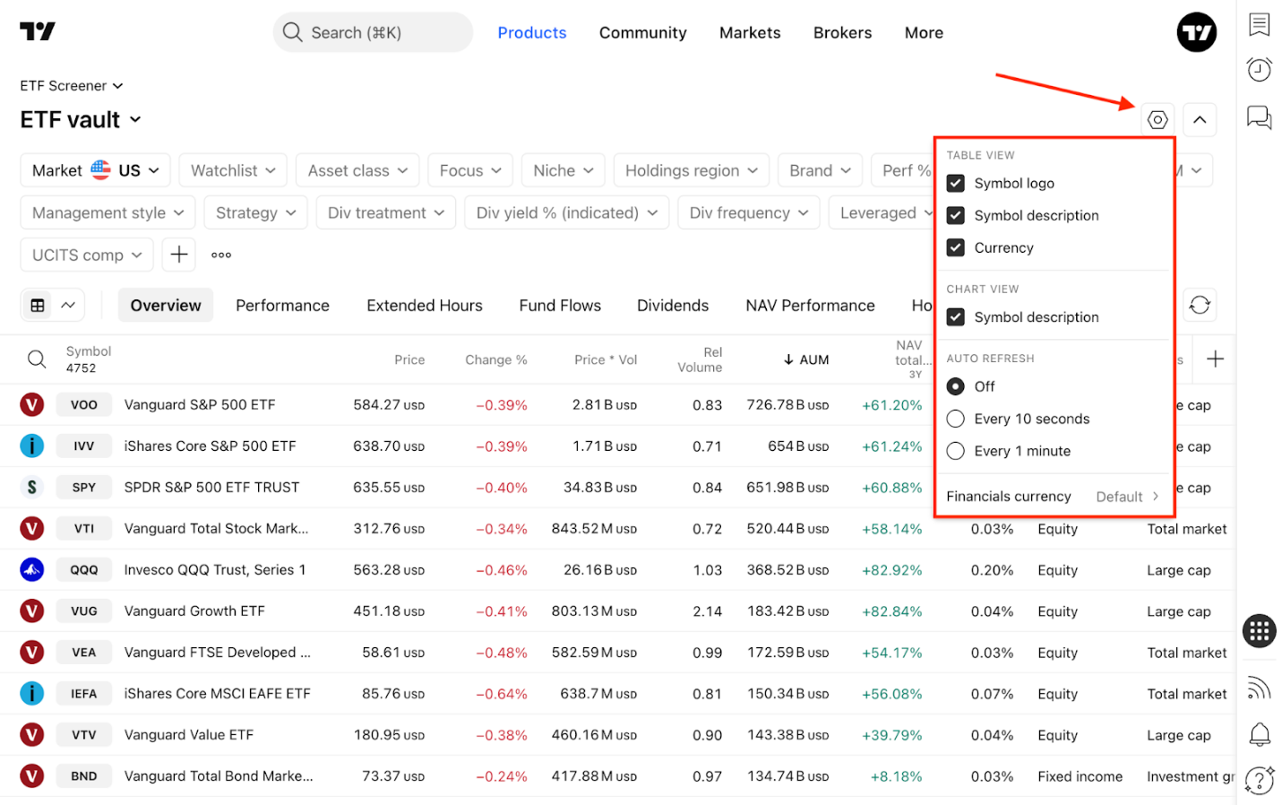 منصة فلترة صناديق المؤشرات المتداولة من TradingView: اختصار لأهم الصناديق