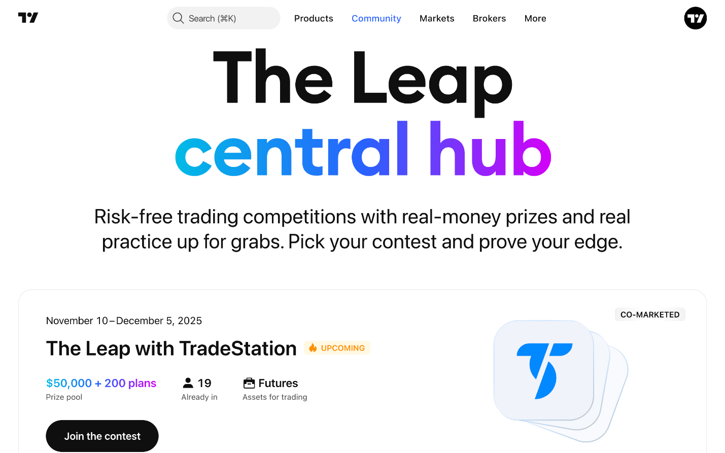 للمشاركة في المسابقة، تحتاج إلى إنشاء حساب TradingView. بعد ذلك، انتقل إلى صفحةThe Leap، وحدد مسابقة، وانقر على «الانضمام إلى المسابقة».