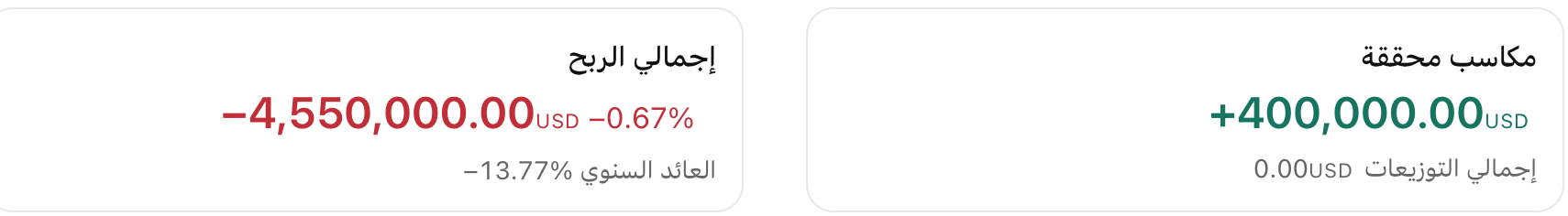 إجمالي الربح هو النتيجة المالية المجمعة المحققة وغير المحققة للمحفظة، وهو ما يمثل جميع الإيرادات والمصروفات.
