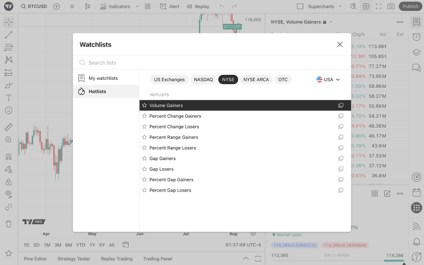 اكتشف محركات السوق باستخدام قوائم TradingView الساخنة
