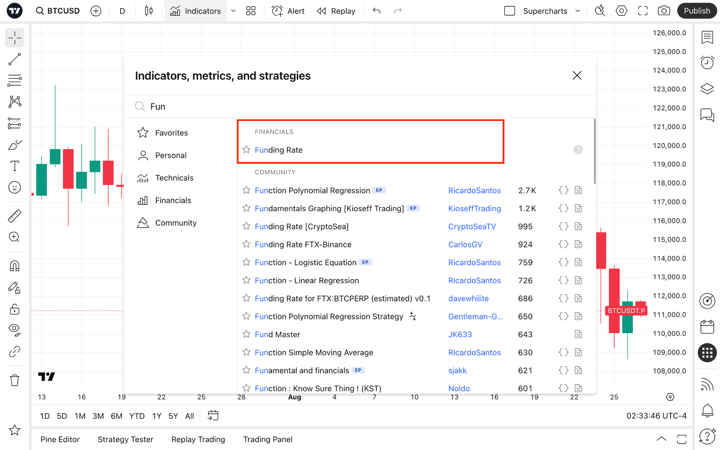 على الرسم البياني، تتوفر بيانات معدل التمويل كمؤشر «معدل التمويل» في علامة التبويب «المالية».