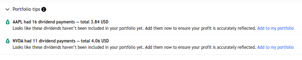 إذا قمت بإضافة معاملة توزيع الأرباح يدويًا بين 3 يوليو 2025 و 9 يوليو 2025، فلن تظهر نصيحة توزيع الأرباح.