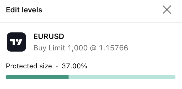 بجانب كل مستوى، سترى أيضًا النسبة المئوية لكمية الطلب الرئيسي المستخدمة في مستوى الخروج المحدد هذا. عند تنفيذ مستوى الخروج هذا، سيتم إغلاق المركز بالنسبة للنسبة المئوية المقابلة من الكمية الإجمالية.